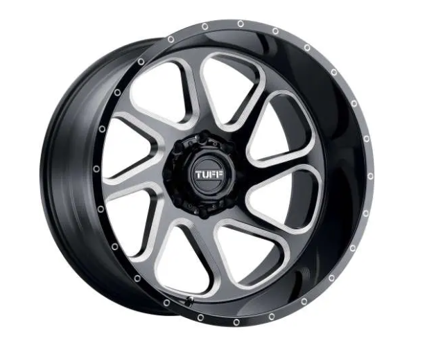 These Tuff T1B wheels feature a Black Milled finish and are sure to make your ride stand out! This particular wheel setup is in 20×10 with a -23 offset. The Tuff T1B is a One Piece Alloy wheel that features exposed lugs. These beautiful 8 spoke wheels are available in a 5×5 configuration and will be sure to elevate the look of your vehicle build!
