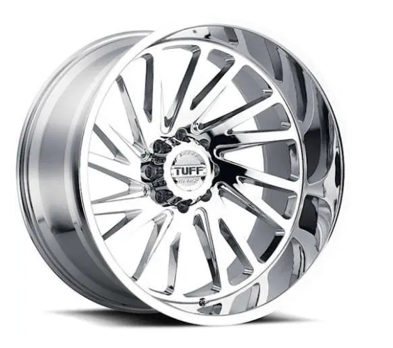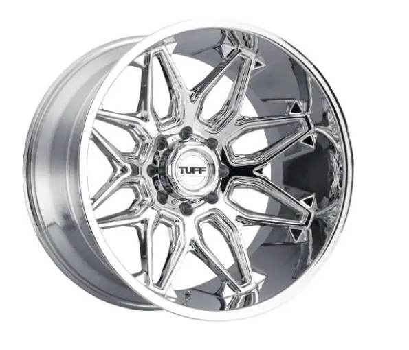 - These Tuff T2A wheels feature a Chrome finish and are sure to make your ride stand out! This particular wheel setup is in 20×12 with a -45 offset. The Tuff T2A is a One Piece Alloy wheel that features exposed lugs. These beautiful 8 spoke wheels are available in a 5×5 configuration and will be sure to elevate the look of your vehicle build!
